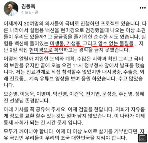 이영미 의사 폭로, 킬러백신내 '괴생명체'(출처: 흰토끼 백신 뉴스)