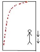 | 그림2: 로켓안으로 들어오는 빛을 보는 관측자