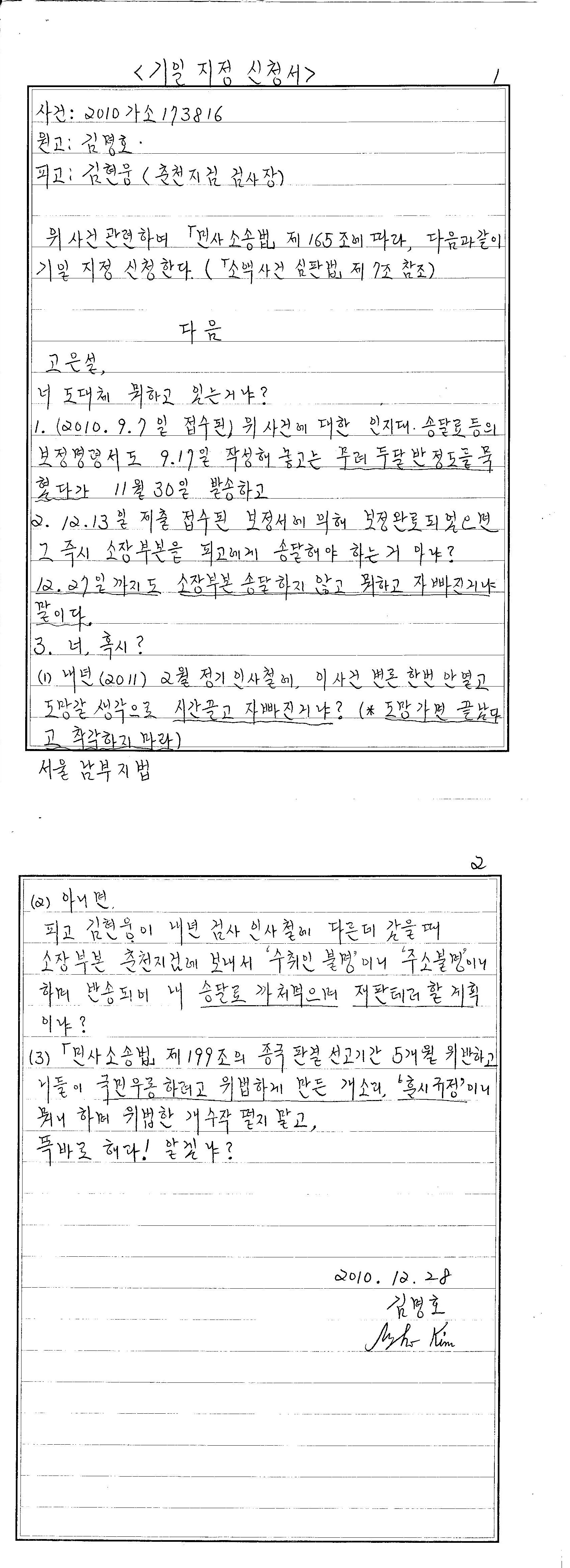 [2010.12.31] 원고 김명호 기일지정신청서 제출