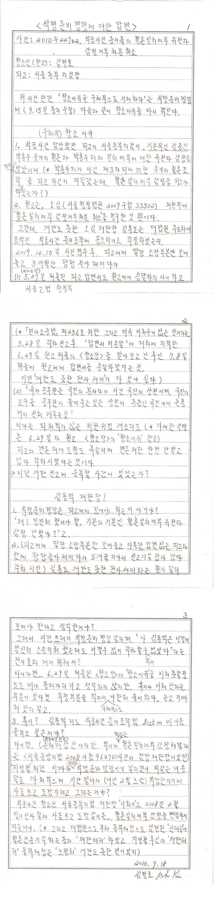 [2010.12.08] 원고 김명호 보정서 제출