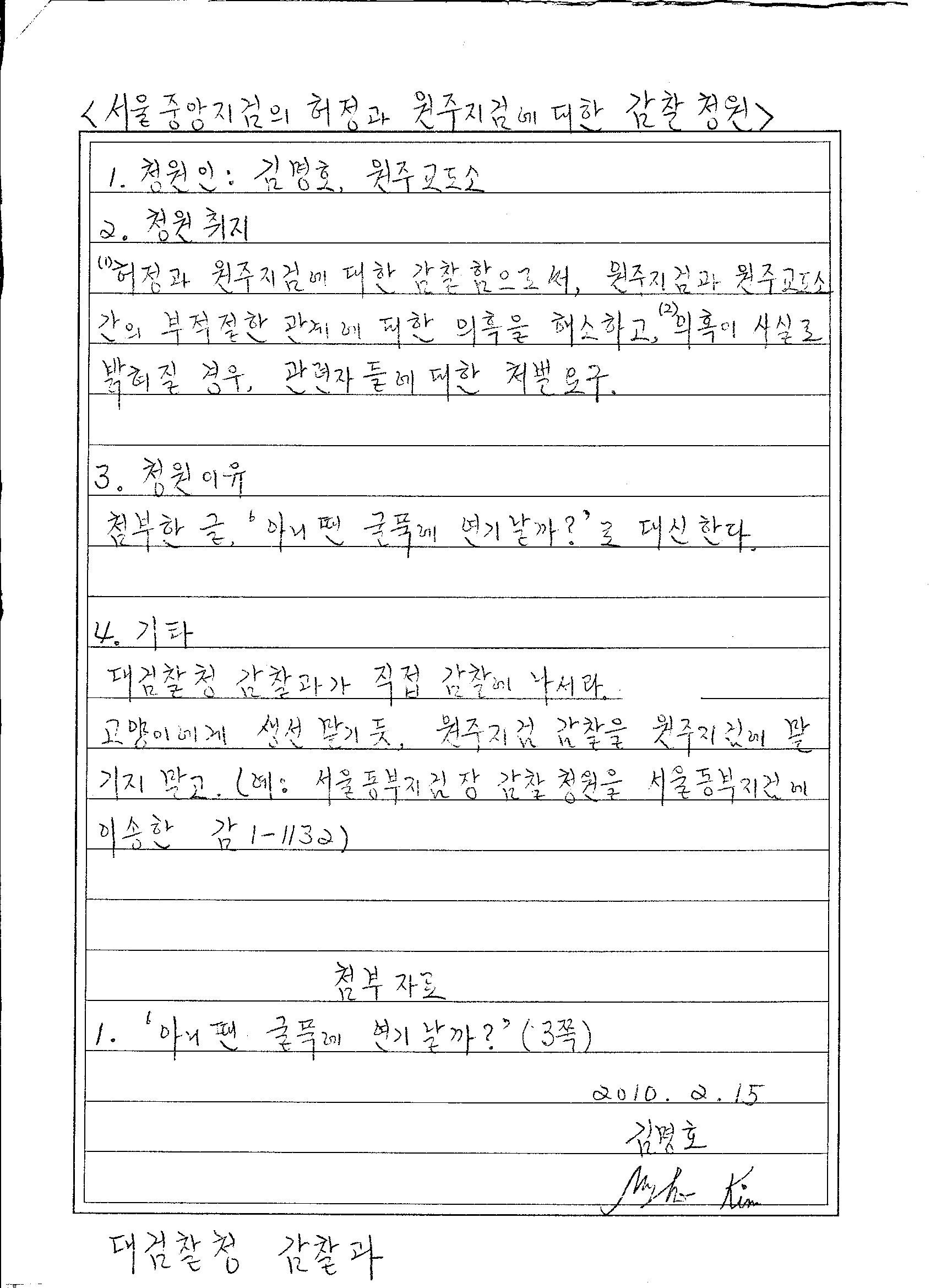2010.12.02 검찰청 춘천지방검찰청에게 문서송부촉탁서(인증등본) 발송