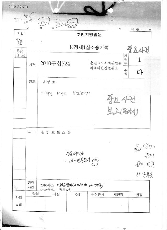 춘천 지법 <2010구합724> 사건으로부터 드러난-