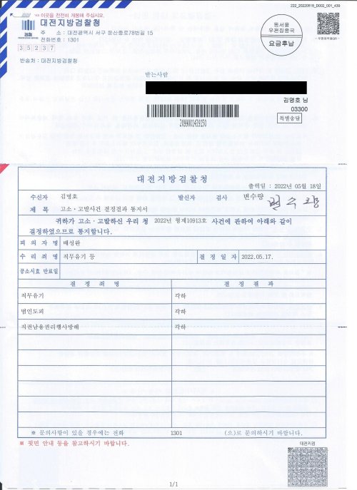 * 역시나 예상한 대로 개만도 못한 검사새끼 신승호가(서울남부 지검) 6.21일자로 위법 '묻지마 불기소 처분'