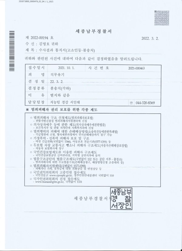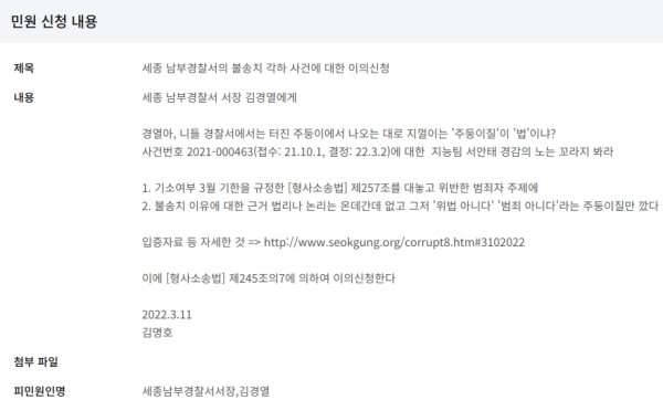 [2022. 3.10] 주둥이질이 '법' - 세종 남부경찰서(서장 김경열)