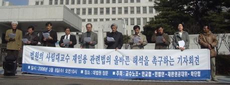 사법부의 재임용법 부당해석과 사립대 교원차별의 시정을 촉구하는 기자회견