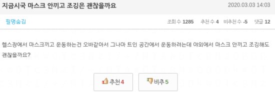 나는 길거리에서 마스크를 쓰는 것도 산 위에서 마스크를 쓰라는 것도 같은 의사지만 말이 되지 않는다고 생각해.