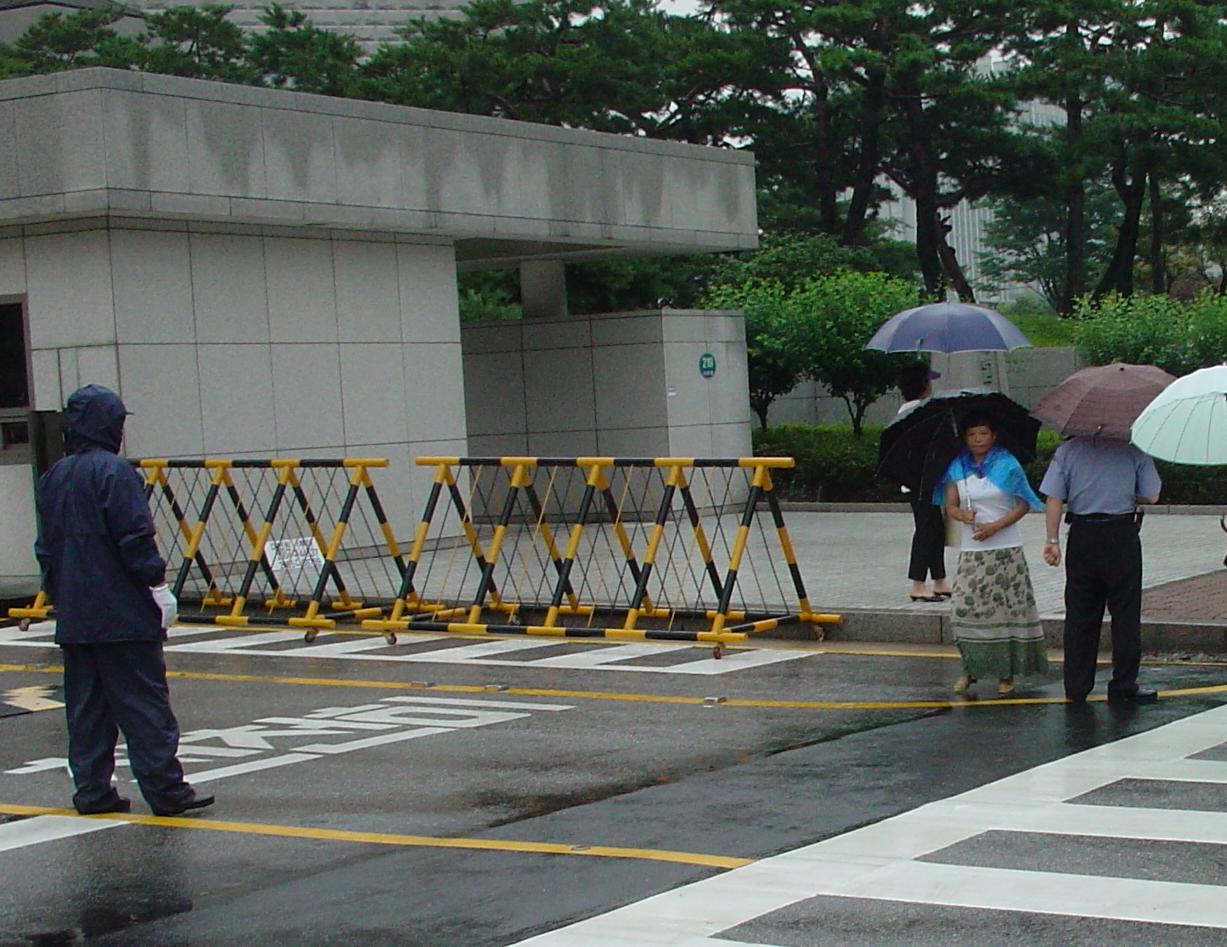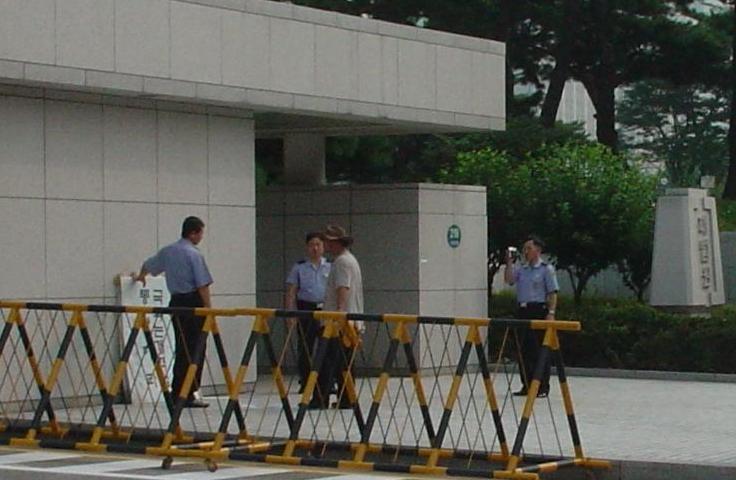 할머니 두분이 양쪽 끝 막대 붙잡고 서 있었더니, 대법원 경비대장을 비롯한 두어 사람들이