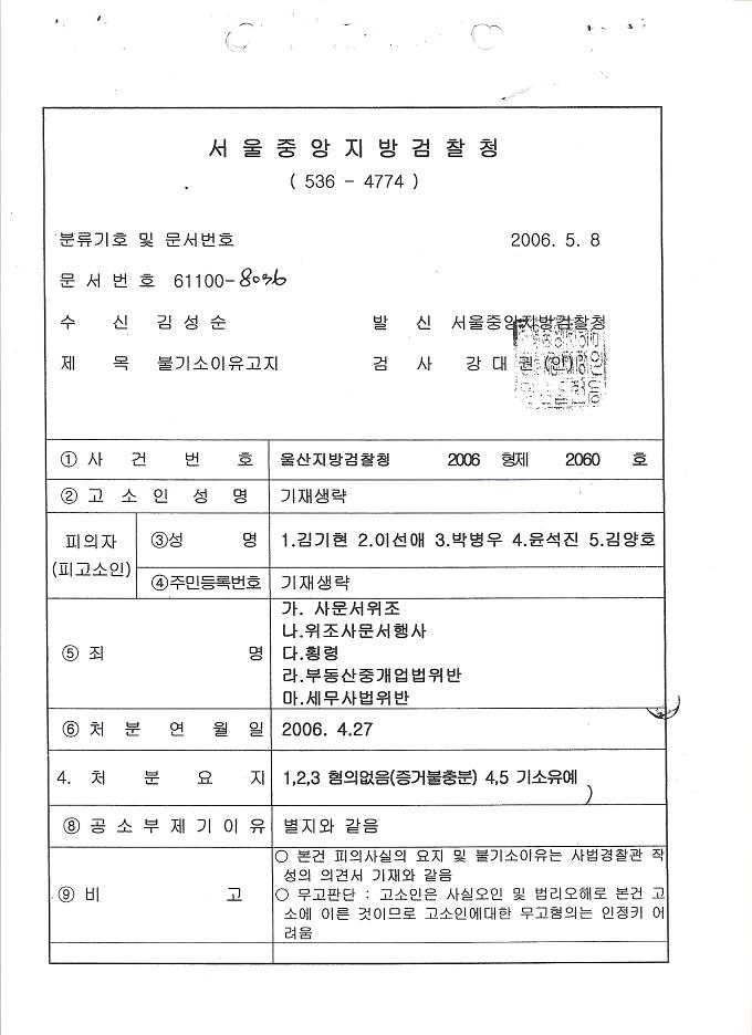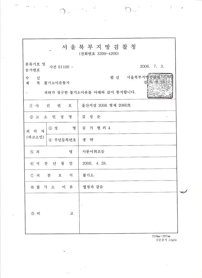 (판사의 거짓말과 검사측 조작 예 ☞ 기소처분 결과 조작,