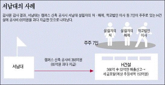 부인과 조카,동생,측근으로 채운 대학교가 제대로 운영될 리 만무했고, 이들은 대학 설립과정에서 건설회사와 짜고 수백억 원의 돈을 빼돌렸습니다.