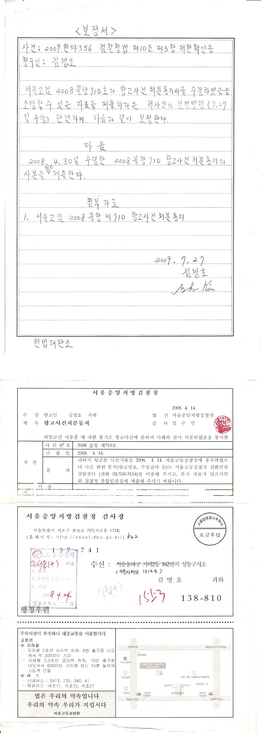 주: 법무시하는 법원의 횡포를 보여주는 좋은 예입니다. 유일한 증거가 김홍수씨 진술이라는 점에서는 위 세 사건이 같습니다. 김홍수씨 진술을 혐의 증거로서 인정하지 않는 마당에