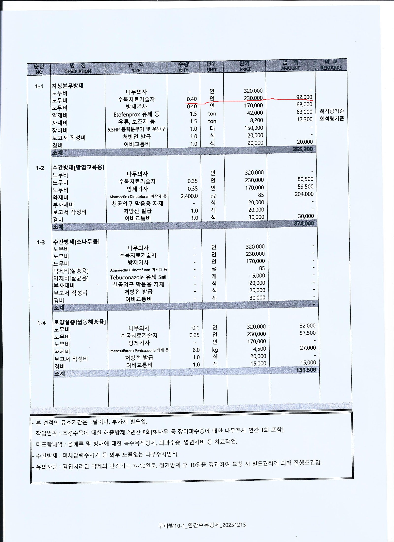 2. 쪼개진 방역관리에 당당히 "면세"라고 기재한 대청그린웍스의 견적서
