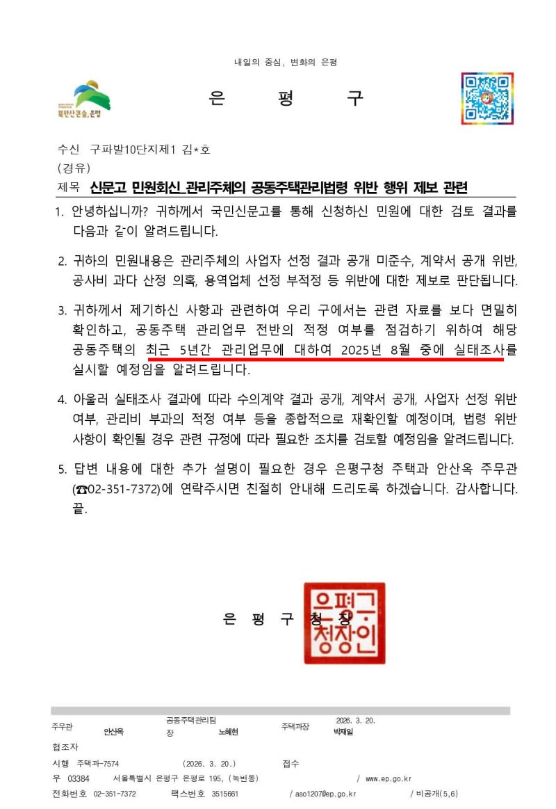 [2026.3.14] 조직적인 은평구 주택비리에 대한 "임시 특별 조사관" 임명 신청(접수)