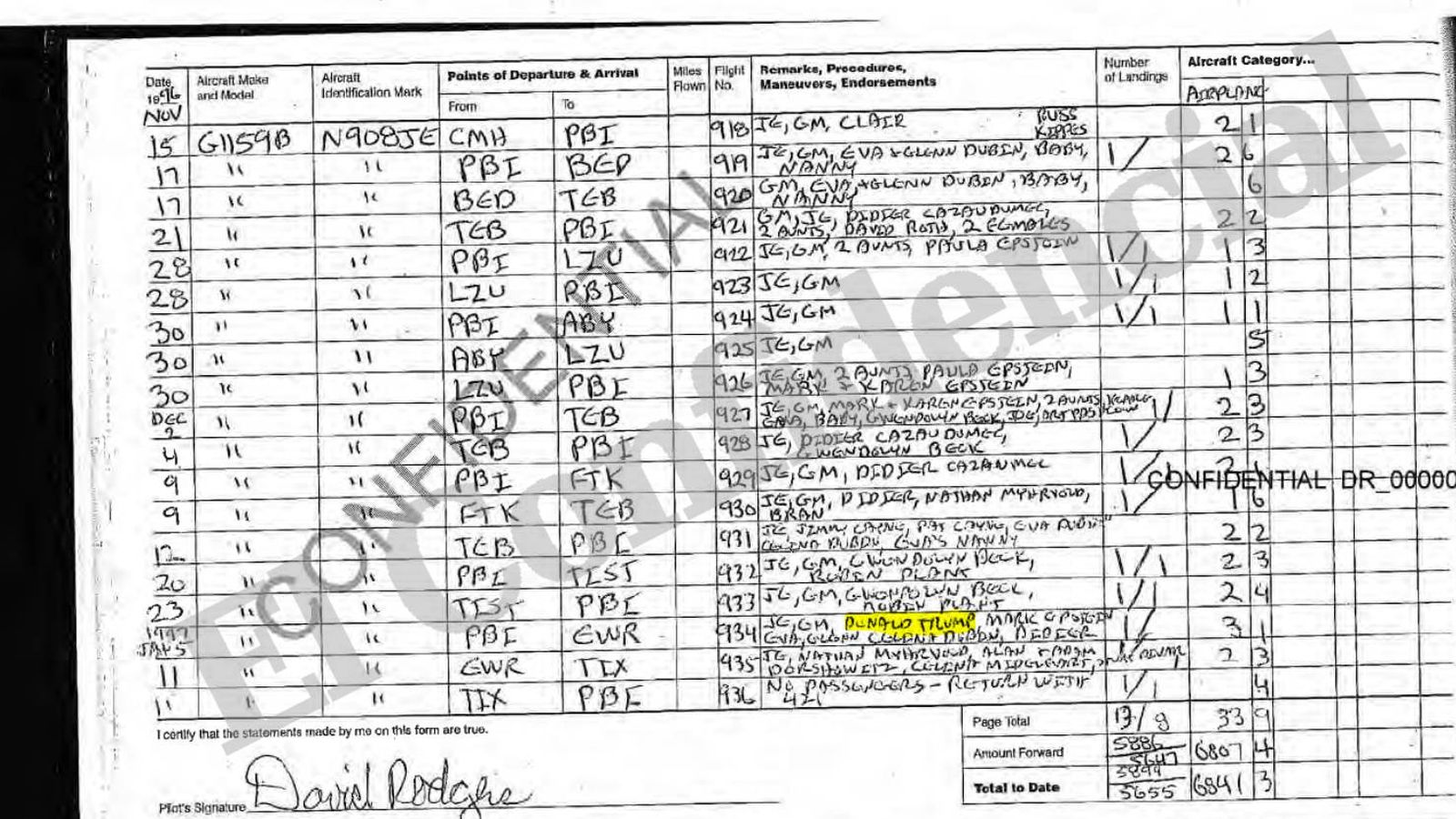 모사드 요원 엡스타인은 섬에 아동성애 파티장을 만들고 전용 비행기 'Lolita Express' 운행 => 비행일지