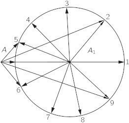 One more way to represent this idea is by means of a drawing, like Fig. 48–2. We draw a vector of length $A_1$, rotating at a frequency $\omega_1$, to represent one of the waves in the complex plane. We draw another vector of length $A_2$, going around at a frequency $\omega_2$, to represent the second wave. If the two frequencies are exactly equal, their resultant is of fixed length as it keeps revolving, and we get a definite, fixed intensity from the two. But if the frequencies are slightly different, the two complex vectors go around at different speeds. Figure 48–3 shows what the situation looks like relative to the vector $A_1e^{i\omega_1t}$. We see that $A_2$ is turning slowly away from $A_1$, and so the amplitude that we get by adding the two is first strong, and then, as it opens out, when it gets to the $180^\circ$ relative position the resultant gets particularly weak, and so on. As the vectors go around, the amplitude of the sum vector gets bigger and smaller, and the intensity thus pulsates. It is a relatively simple idea, and there are many different ways of representing the same thing.