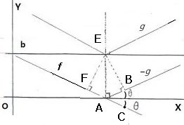 => FA+AB=$2b\sin\theta=m\lambda$일 때만, 즉 E를 지나는 $f,-g$의 값 일치, $f+g=0$ at E.