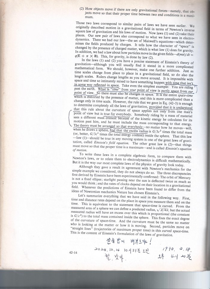 1. 중력장에서의 42.12와 가속도 계에서의 42.6이 equivalent하다는 건 가속도와 중력의 등가 효과