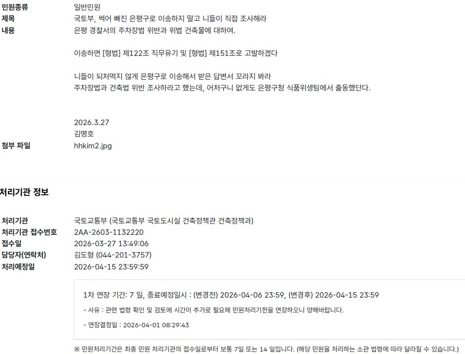 ① ÀºÆò°æÂû¼¿¡ ½ÃÁ¤¸í·É¸¸ ³»¸®¸é µÇ´Â °ÍÀ» ÁúÁú ²ø¸ç 󸮱Ⱓ ¿¬Àå(4.1ÀÏ)Çϰí ÀÚºüÁö´õ´Ï