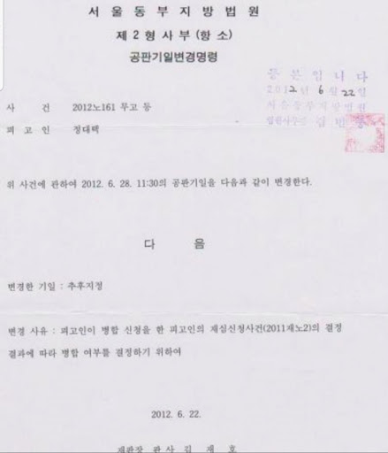 3. 2012.7.5일자 대법원 규탄 일지(* 순위에서 밀렸는지 대법관보다 한 단계 낮은 헌법재판관으로 임명됨)