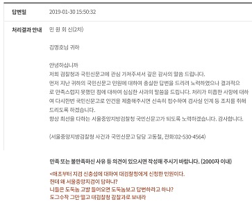 항상 최선을 다하는 서울중앙지방검찰청 국민신문고가 되도록 노력하겠습니다. 감사합니다.