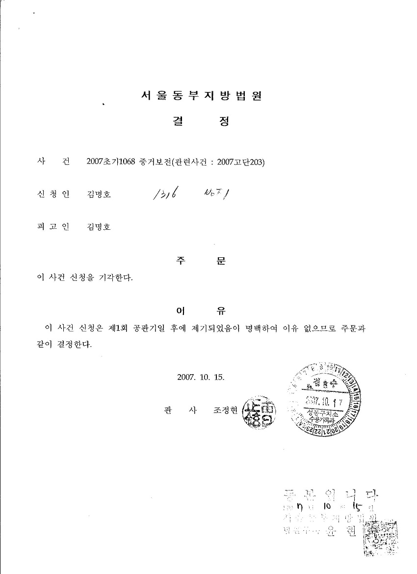 2007년 대법원장 이용훈, 검찰총장 정상명의 명령으로 검사장 선우영의 지휘 감독 하에