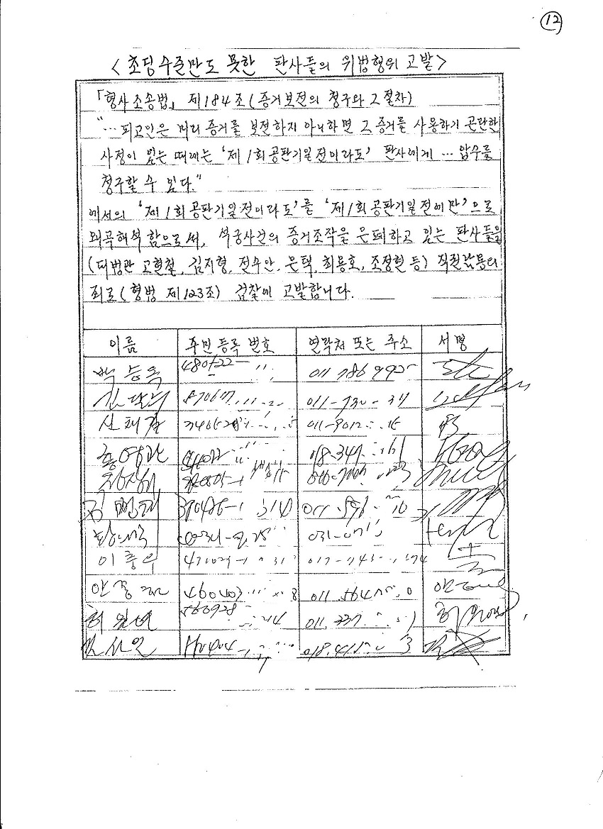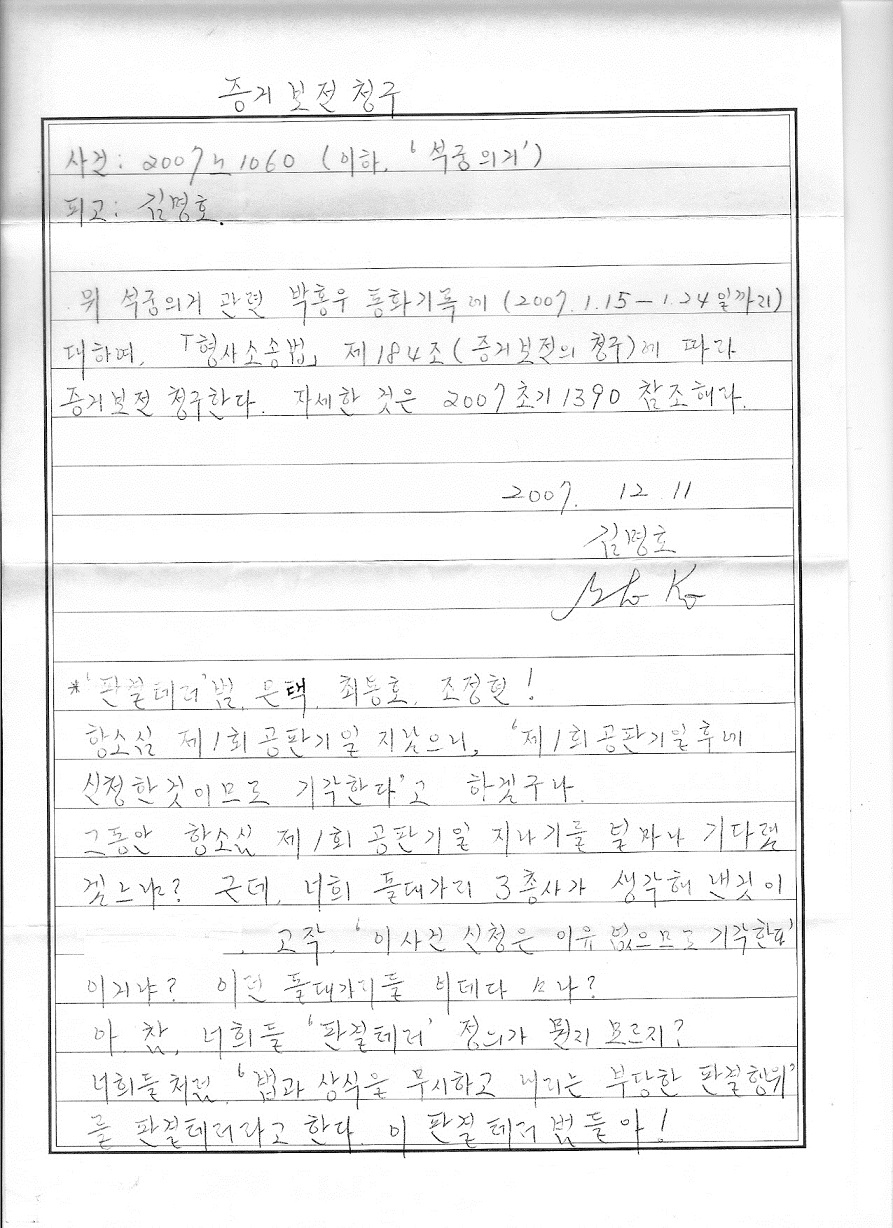 썼다(대법원 규탄일지, 2011.12.27일 자).