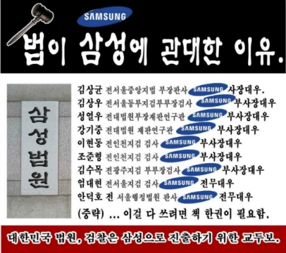 삼성과 관련한 사건에 대해 법원은 대체로 삼성 편을 들어주었다.