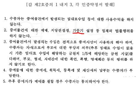1. 약정서 제2항, 증여물건에 대한 가등기 불허