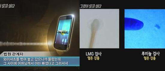 그리고 부러진 화살의 최대 이슈, 와이셔츠에만 없는 혈흔 문제이다. SBS는 서울대 법의학팀과 함께 흥미로운 실험을 했다. 와이셔츠를 세탁했을 때 혈흔이 검출되는가에 대한 것이다. 실험결과 몇 차례 강력한 세탁을 했음에도 혈흔은 나왔다. 여전히 수상하다. 누군가 조작을 했다는 심증은 있지만, 경찰은 아무런 조치도 취하지 않았다.