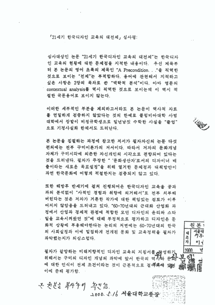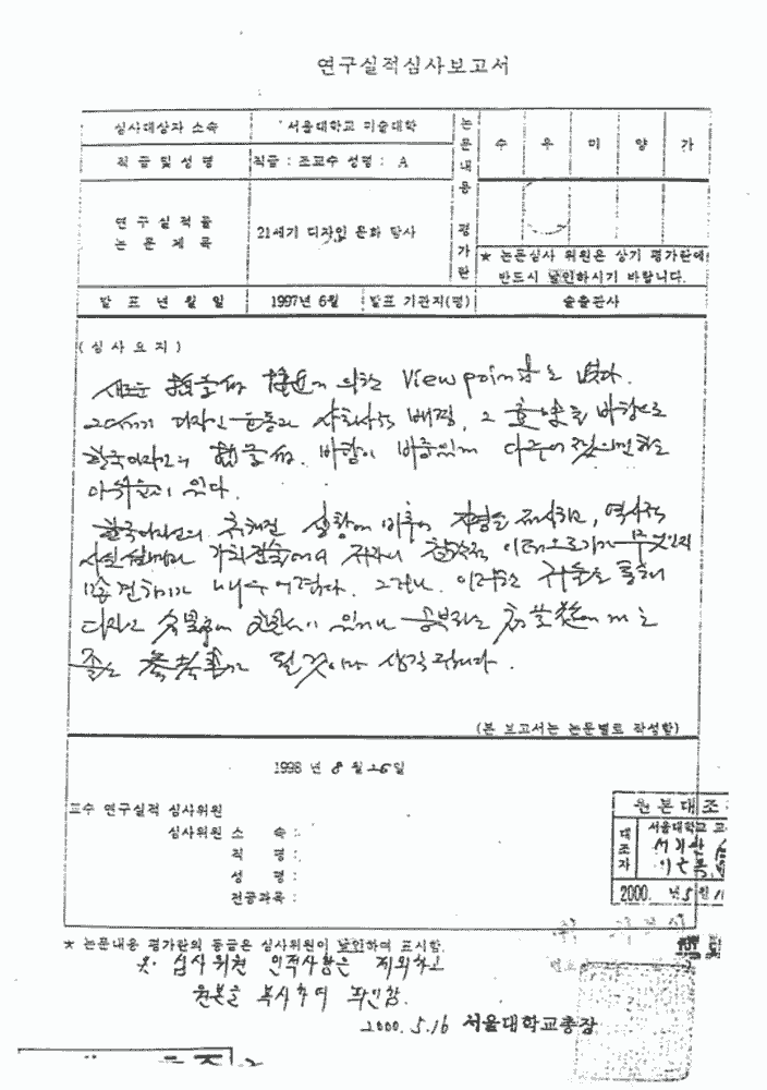 * 저서에 있지도 않은, 5장을 언급한 심사표