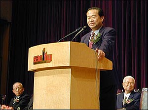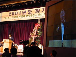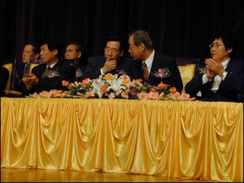 63빌딩 연회장 중에서 가장 크며 원탁테이블로 디너식을 차릴 경우 최대 900여명을 수용할 수 있다는 국제회의장은 시작부터 이미 꽉 들어찼다. 단상 내빈석에는 낯익은 정치인들의 얼굴이 눈에 띄었다.