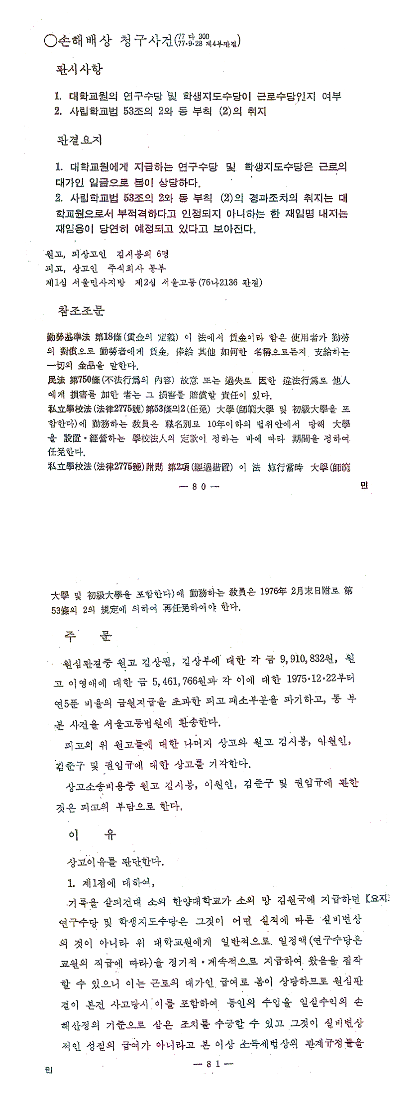 (ÂüÁ¶: 77³â ÆÇ·Ê, 77´Ù300ÀÇ »ç¸³Çб³¹ý ÇØ¼® ÆÇ°á¿äÁö =>