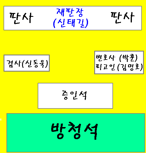 - (신태길 재판장) 동부지법 형사 1부에 재판부가 변경됐습니다. 저는 재판장으로 신태길 판사이고, 여기는 신동욱