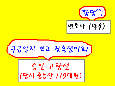 답 ☞ 보지 못했습니다. 증인이 진술을 했으나, 당시 그 직원이 없어서 구급일지를 보고 답변을 했을 뿐입니다.