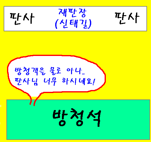 * 재판테러 작심한 신태길은 그때까지 문제없이 해왔던 법정내 녹음 및 속기를 금지시켰다. 다음은 서형작가가 인턴넷에 올린 기록이다.(비교: 신태길의 조작 공판조서)