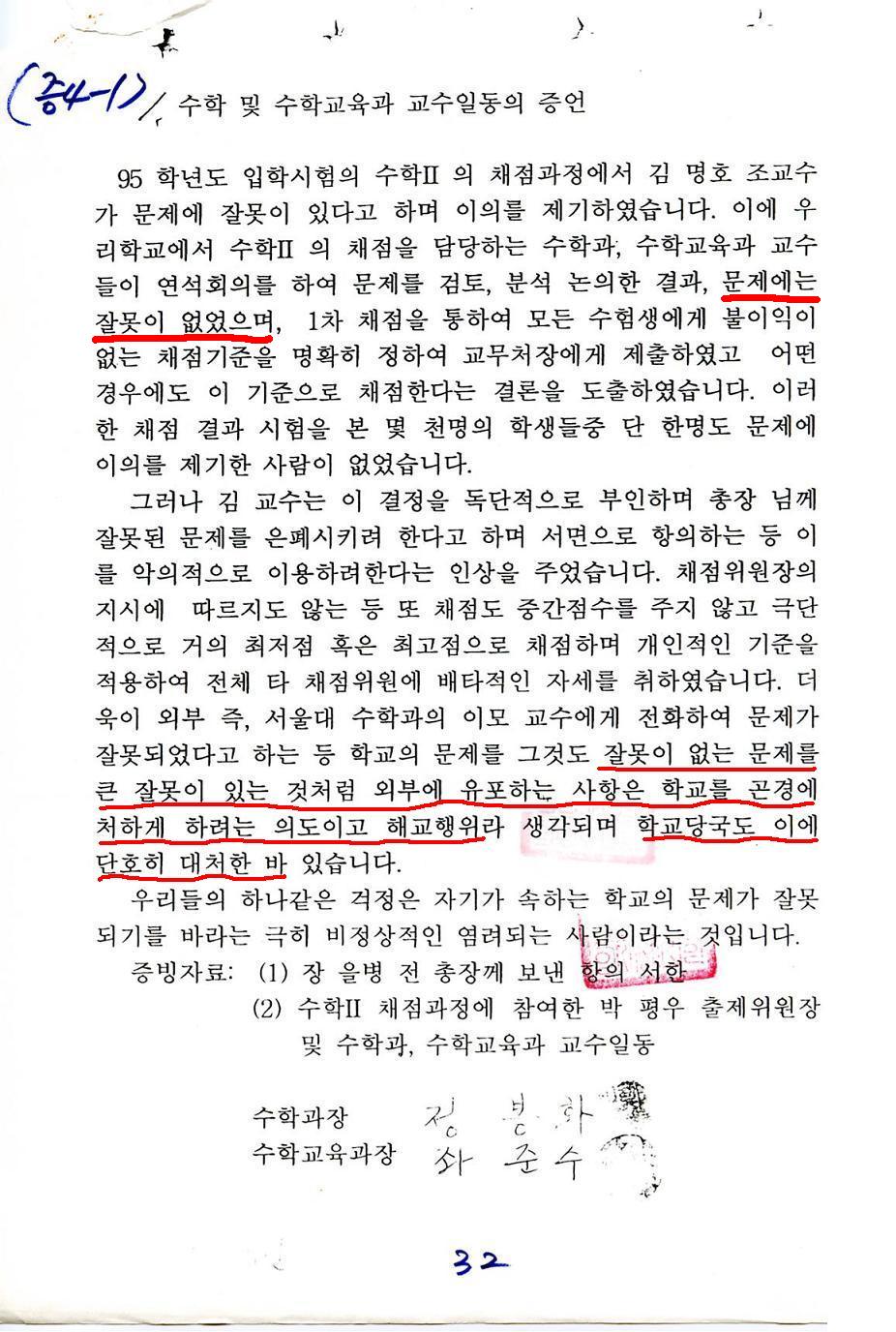 (증 4-1) 수학 및 수학교육과 교수일동의 위증