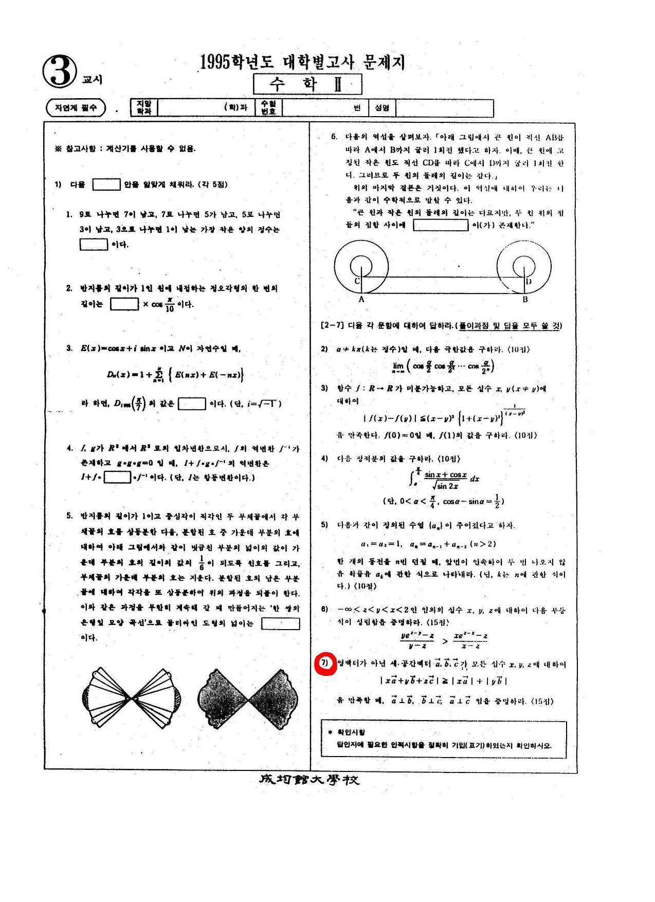 95 학년도 입학시험의 수학 II의 채점과정에서 김 명호 조교수가 문제에 잘못이 있다고 하며 이의를 제기하였습니다.