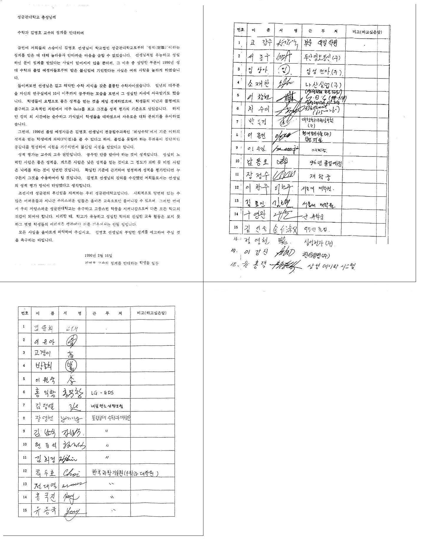 * 성대 입시부정 공범들: 정범진 총장, 심윤종 교무처장, 전 수학과 및 수학교육과 교수들, 정보공학과 원동호, 고분자 공학과 김태호, 전몽각 부총장 등