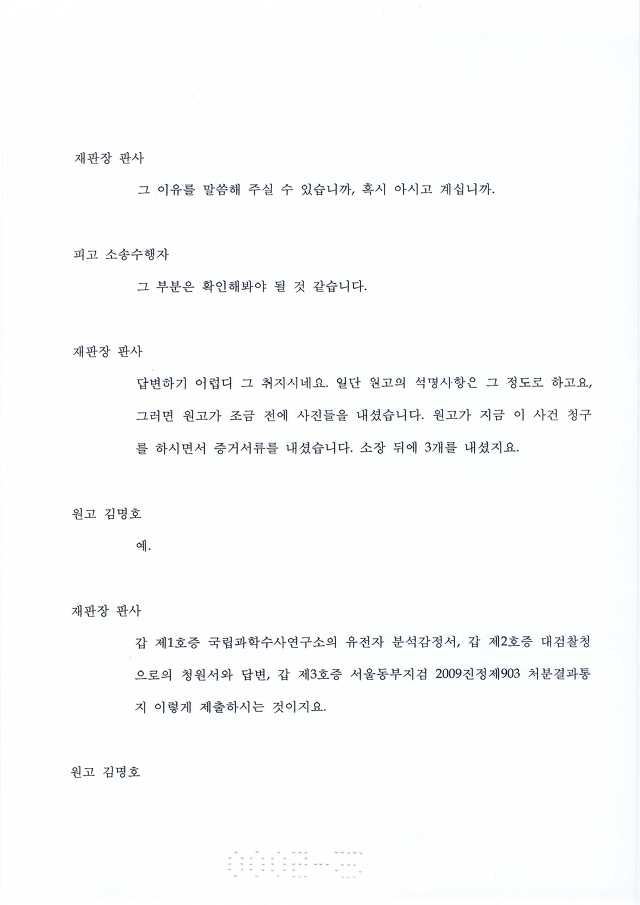 국과수에 유전자 감정의뢰 보낸 목적이 뭐냐? 혈흔 일치 여부 판단하려고 하는 거 아냐?