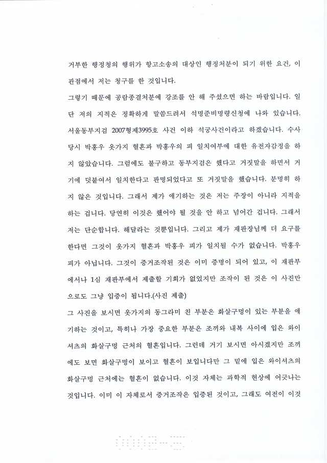 박홍우 피가 아닌 제 3자의 피로 증거조작하였기에 박홍우 옷가지와 박홍우 피의 일치 여부에 대한 유전자 감정을 고의적으로 하지 아니하였다. 증거 조작한 검찰 놈들과(백재명, 조주태 검사) 혈흔 일치 여부 검증도 없이 증거채택하여 유죄 판결 내린 법원의 재판테러범들이(김용호, 이회기, 신태길, 이홍훈, 김홍도, 노정희, 김용덕 판사등의 쓰레기들 집단들) 혈흔 검증하지 않으려고 발버둥 치고 있다. |