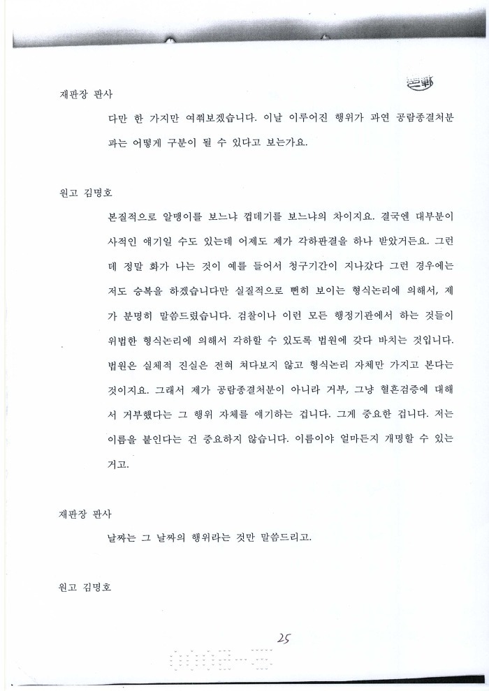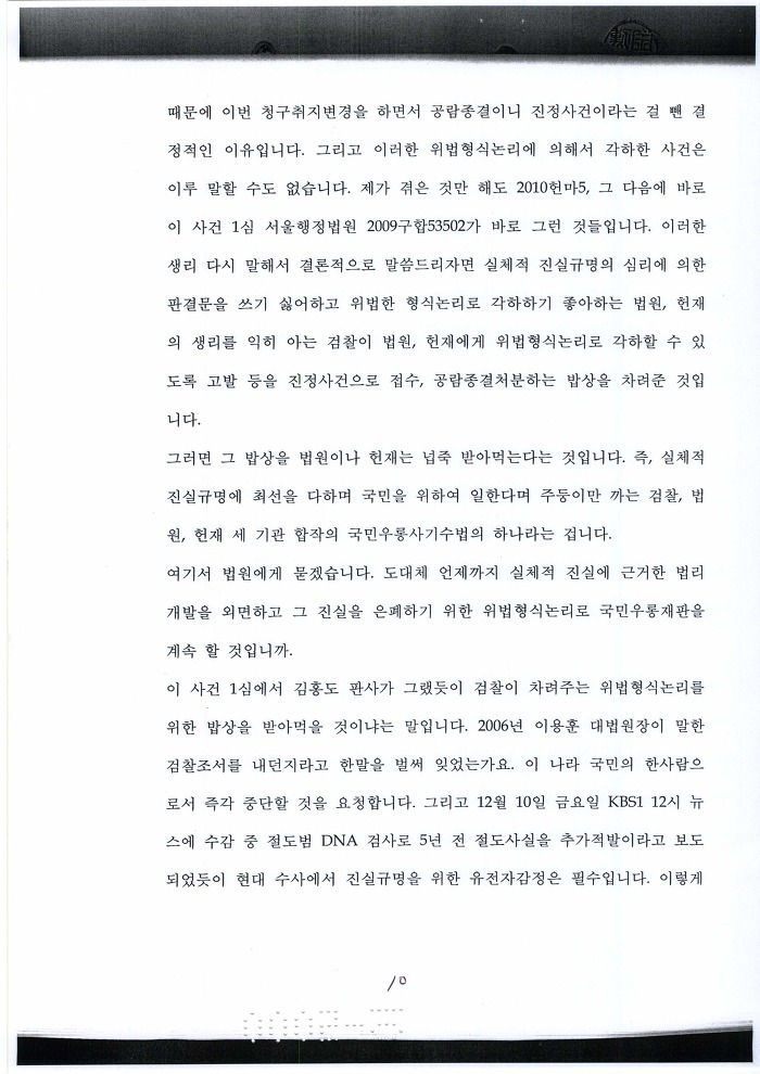 검찰이 인정하고 재판부가 확인하였다는 것이 이 행정소송의 성과 !
