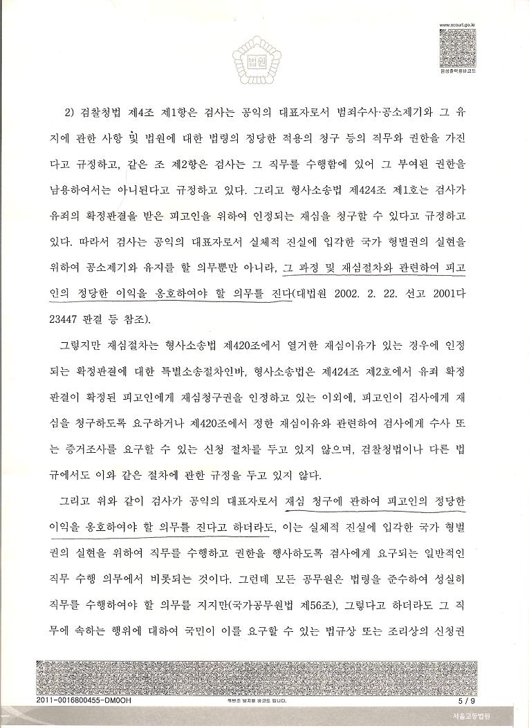 어려운 법리 언급할 필요없이 알기 쉽게 애기 하면, 검찰이 증거조작한 것을 밝혀달라고 하는데 그것을 입증해 달라는 권리가 국민에게 없다면, 누구든지 검찰은