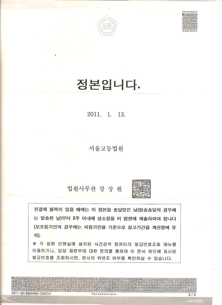 전수안, 이상훈, 김지형, 양창수의 그 공포의 4글자 '이유없다' 기각 결정문 수령