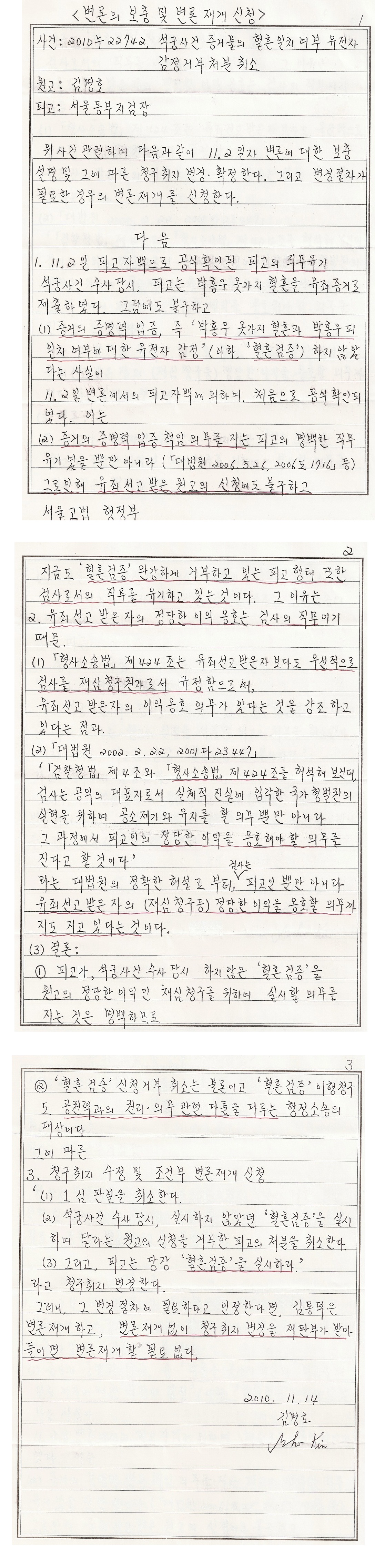 재판부는 "검사는 김명호씨의 신청에 따라 혈흔 검사를 해야하는