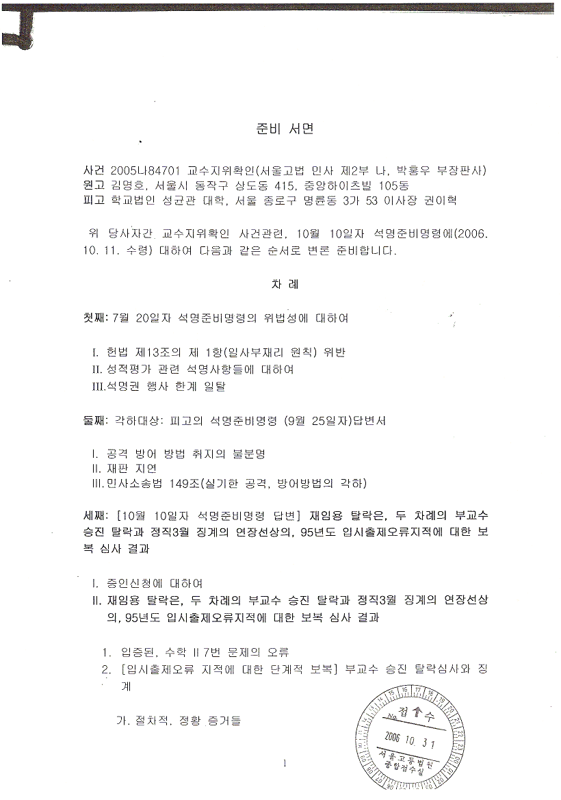 무성의한 성대측 답변서에 대한 준비서면1 제출