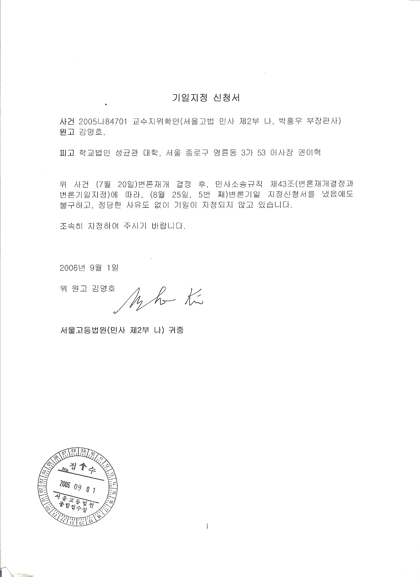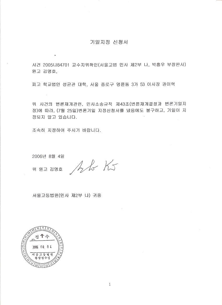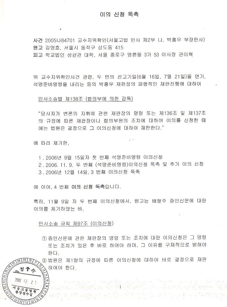 서울 중앙지방법원에 교수지위확인 소송 제기