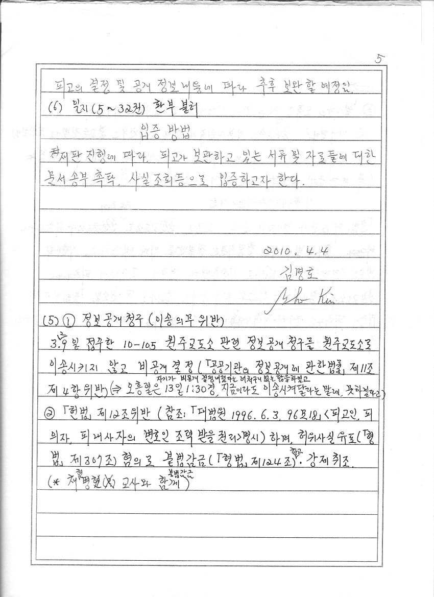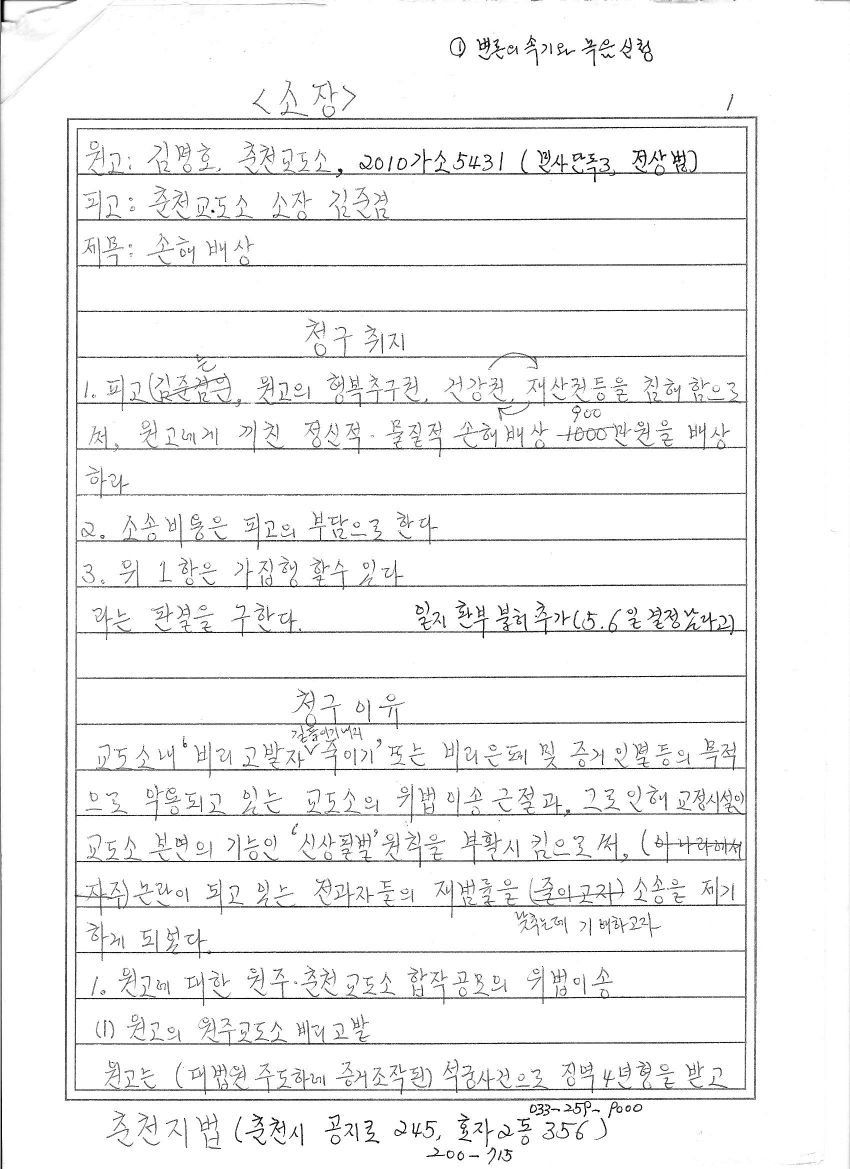 소송의(<춘천지법 2010구합724>, <춘천지법 2010가소7208> 등 포함) 목적 또한 교도소와 법무부가 어떻게 위법행위를 저지르는