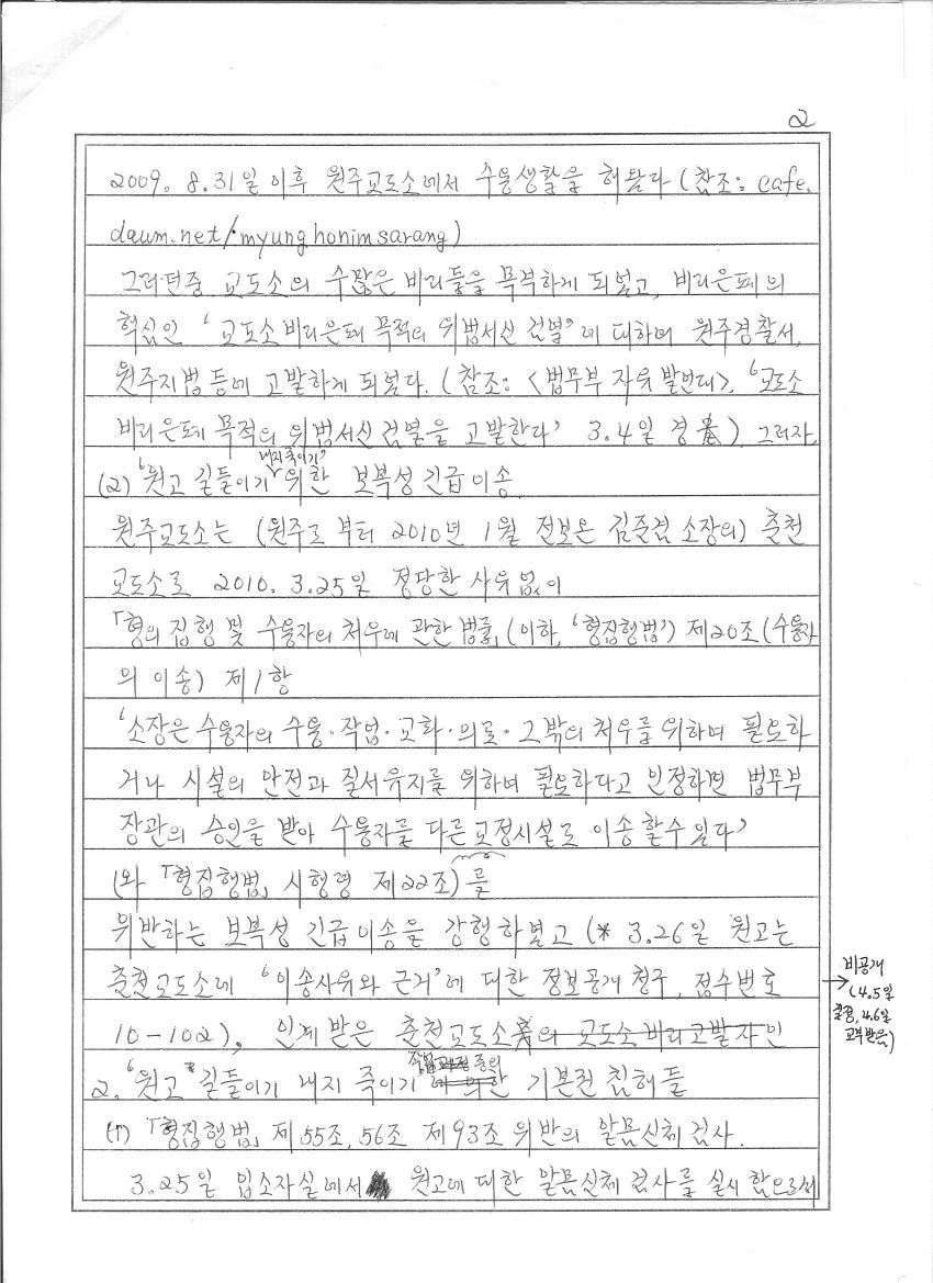이러한 교도소 내 비리 근절을 위하여, 원고는 국가인권위로 부터 교도소 위법서신검열관련 [형집행법] 시행령과 [법무부 지침]에