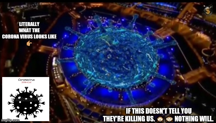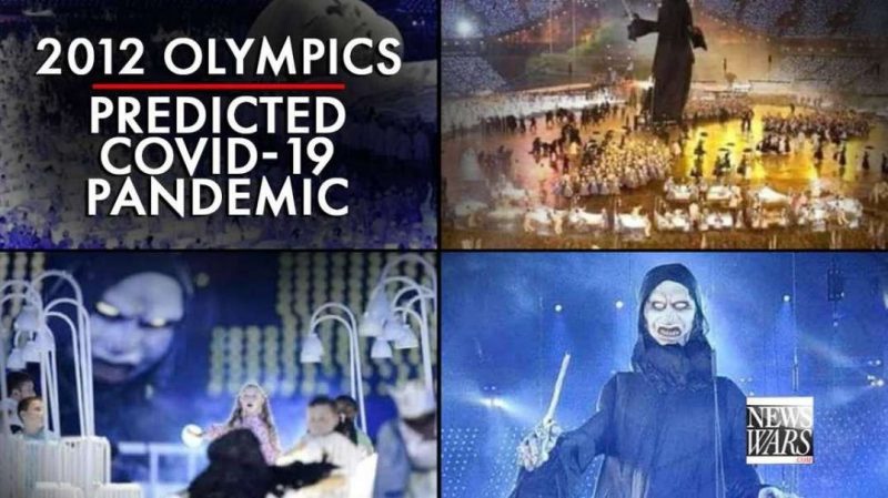 17. Pandemic Depicted During Olympics Summergames In 2012 Talking about predictive programming: during the opening show of the Summer Olympics in 2012, a coronavirus pandemic was played out for the eyes of the whole world. Dozens of hospital beds, large numbers of nurses becoming puppets of a controlling system, death lurking about, a demonic giant rising up over the world, and the whole theatre was lit up in such a way that seen from the sky it looked like a coronavirus.