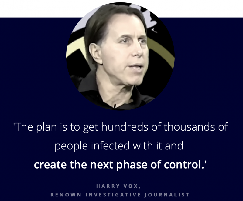 19. Journalists Predicted Planned Pandemic In 2014 the investigative journalist Harry Vox predicted a planned global pandemic and said why the ‘ruling class’ would do such thing:‘They will stop at nothing to complete their toolkit of control. One of the things that had been missing from their toolkit is quarantines and curfews. The plan is to get hundreds of thousands of people infected with it and create the next phase of control.’ (7)