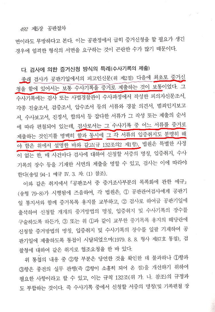 형사 재판에서는 검사측이 제출한 증거라고 주장하는 서류와 그 각 서류에 대한 입증취지가 없는 한, 피고인은 절대로